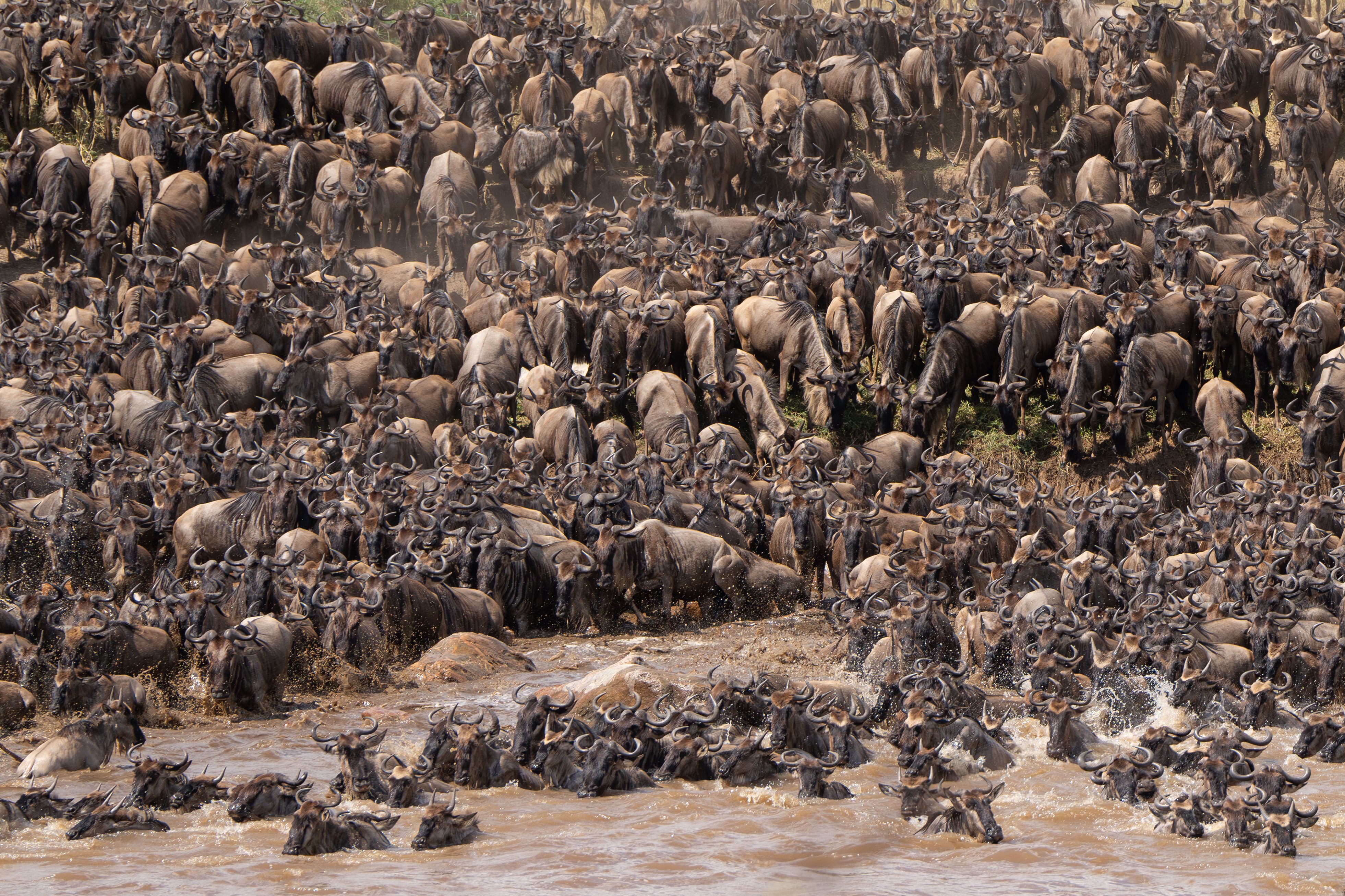 The Great Migration: Photograph millions of wildebeest, zebras, and gazelles as they cross the Mara River in one of nature’s most dramatic events.